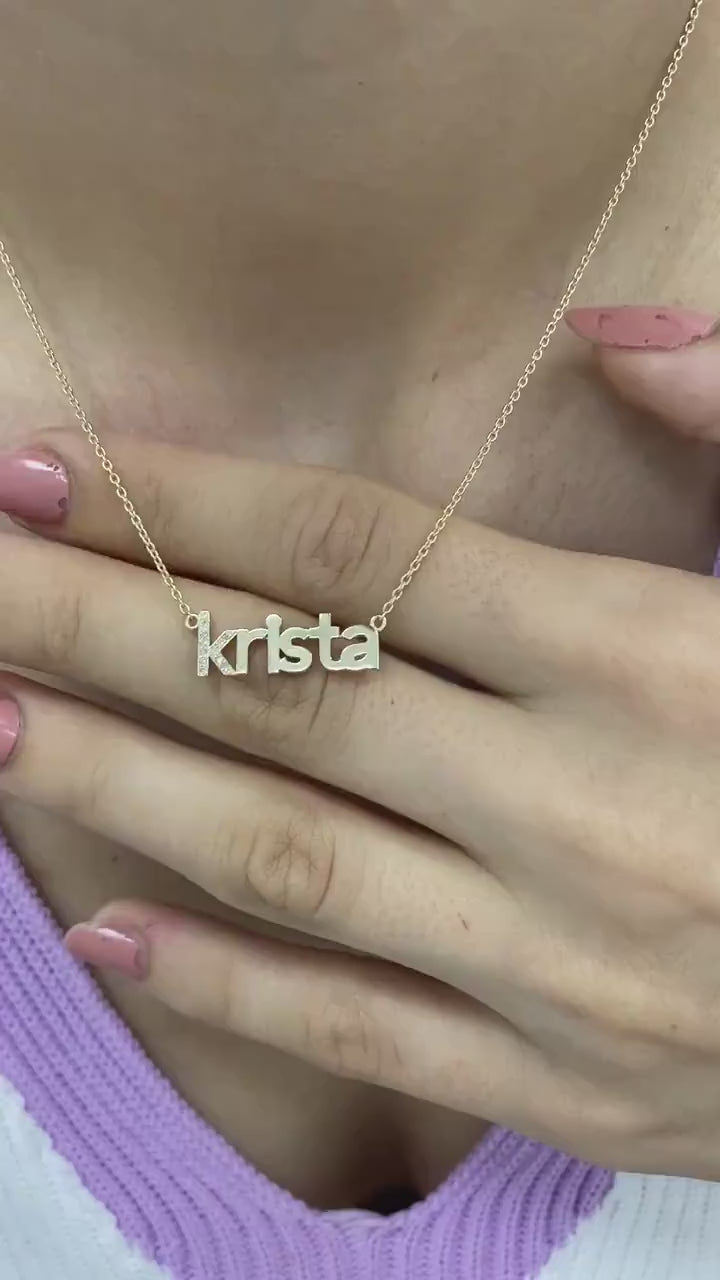 Make a statement with this elegant personalized name necklace, crafted in high-quality gold. Designed with a delicate chain, this necklace features a modern and stylish font spelling out Your name with a touch of sparkle for added charm.
